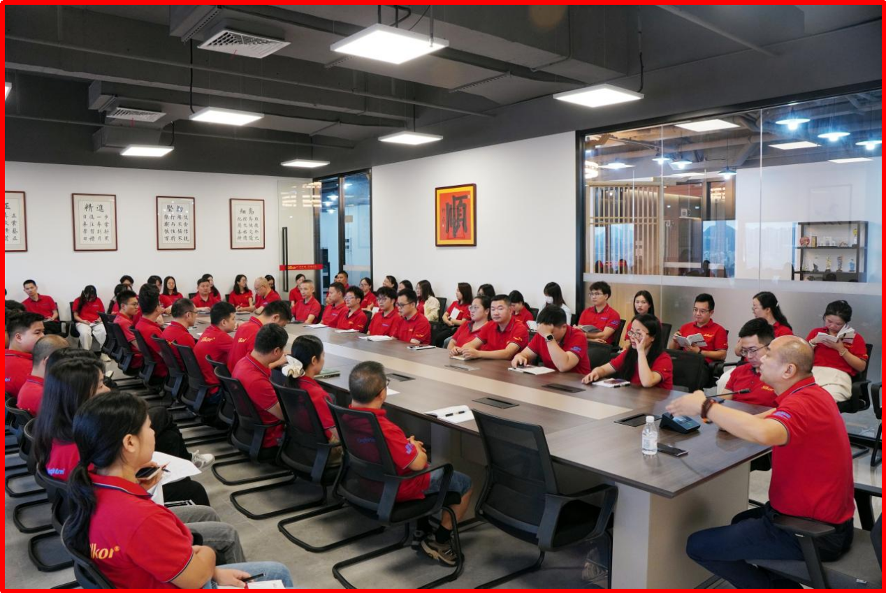 10月13日上午,总经理宋仕强在金航标(www.kinghelm.net)/萨科微(www.slkoric.com)主持召开全员大会,总部各职能部门上百名员工统一工服,精神抖擞参会。
