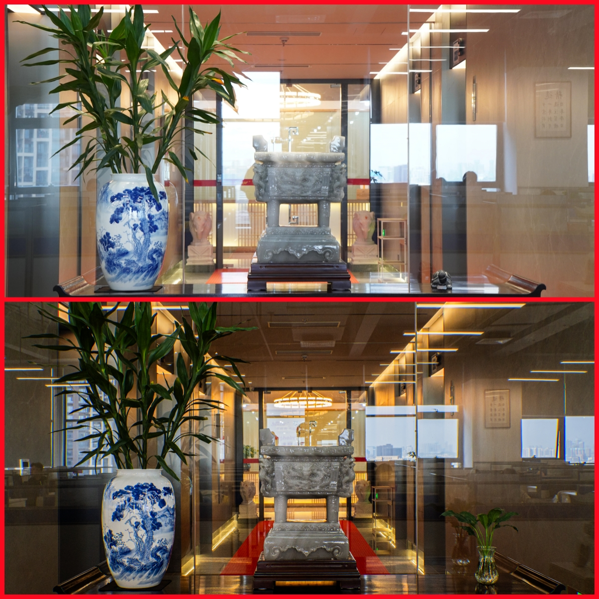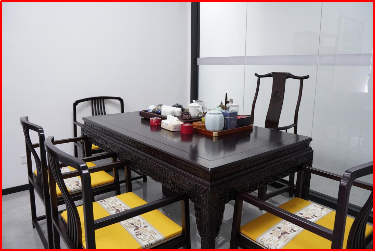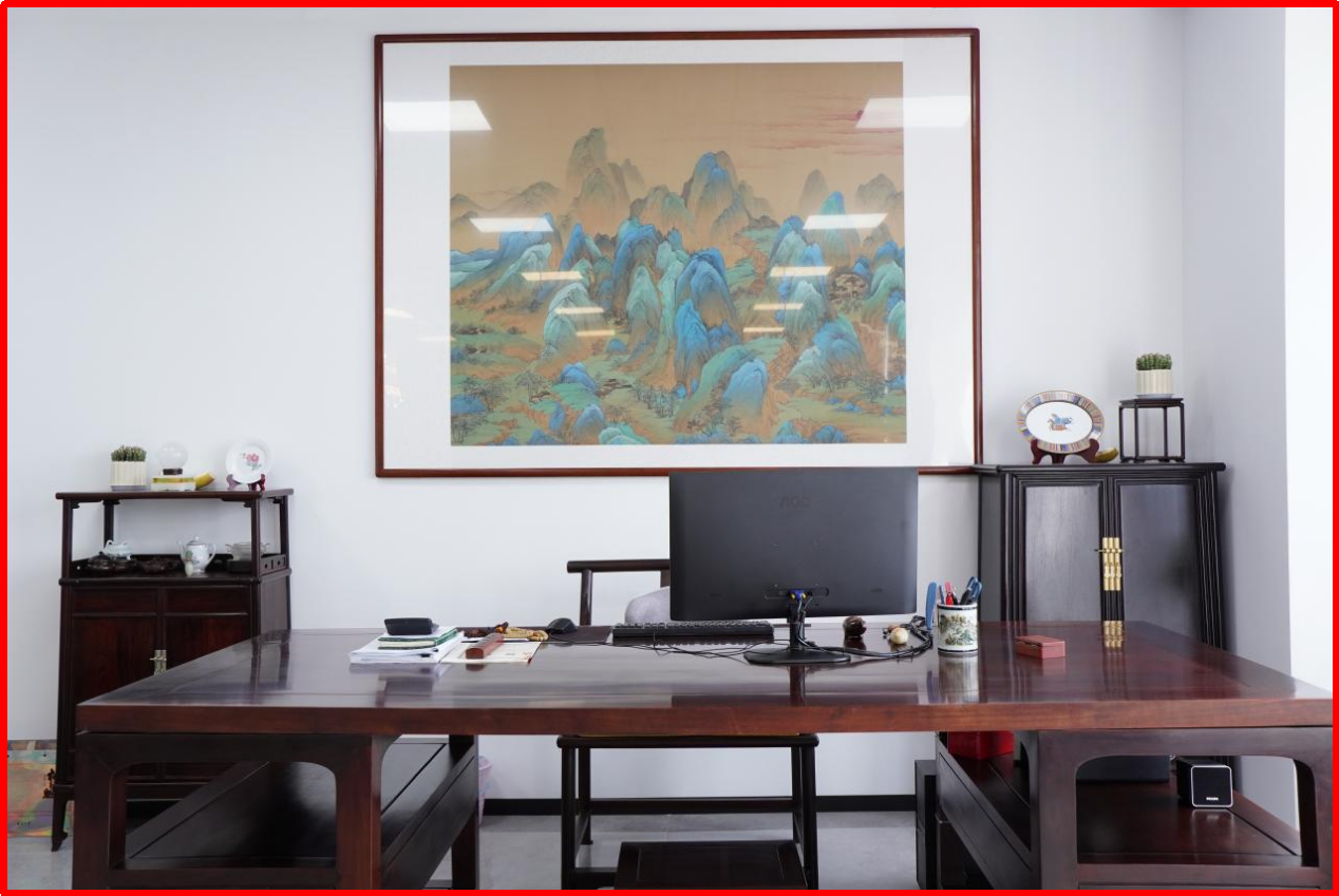 中堂,承载中国人的家庭文明与道德传统,是厅堂中最为尊贵的位置,中堂待客代表尊贵礼遇、宾至如归。明式红木的案、几、椅,是简约实用的终极表达,总经理宋仕强说道“金航标和萨科微致力于打造简单和谐、高效进取的工作氛围,希望同事们开心工作好运连连。”北齐最美佛像头,京作(原清宫造办处)工艺,来自宋仕强先生老家四川的汉白玉质地白净细腻,摆放在总部中堂的案子上,为办公空间带来静谧与禅意。