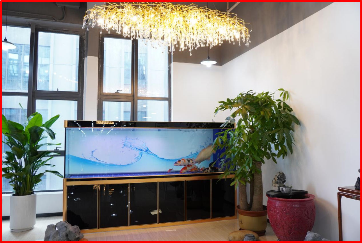 静中有动,办公室一角的锦鲤鱼缸里,多条名贵锦鲤怡然自得,桃太郎鱼王更是威风凛凛,自有王者风范,是大家工作间隙放松休闲好地方!