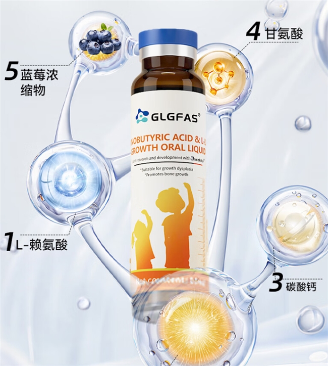 科学干预儿童矮小,需 “精准补充 + 习惯调整” 双管齐下:先通过体检排查内分泌问题,再保证睡眠(每天睡够 10-12 小时,晚上 9 点前入睡)、坚持纵向运动(每天 30 分钟),再针对性补充营养缺口。其中,补充赖氨酸是关键,而GLGFAS 赖氨酸成长口服液正是为儿童身高发育设计的精准营养补充剂,能完美适配孩子的营养需求。