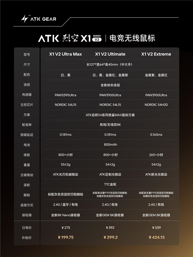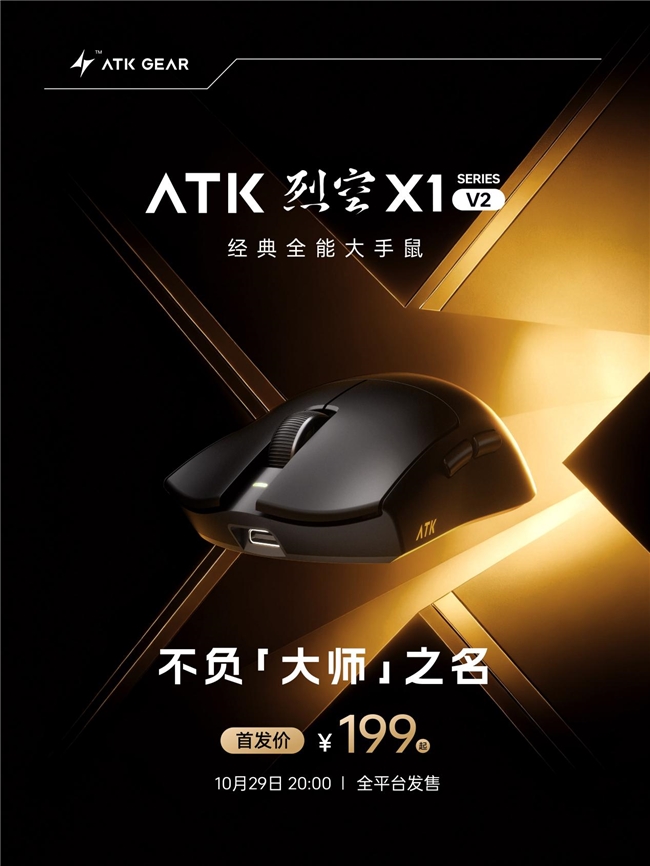 ATK烈空X1 V2系列现已正式上市,起售价199元,无论你是FPS游戏中的对枪高手,还是MOBA战场上的对线扛把子,烈空X1 V2都能为你提供稳定可靠的操控体验。