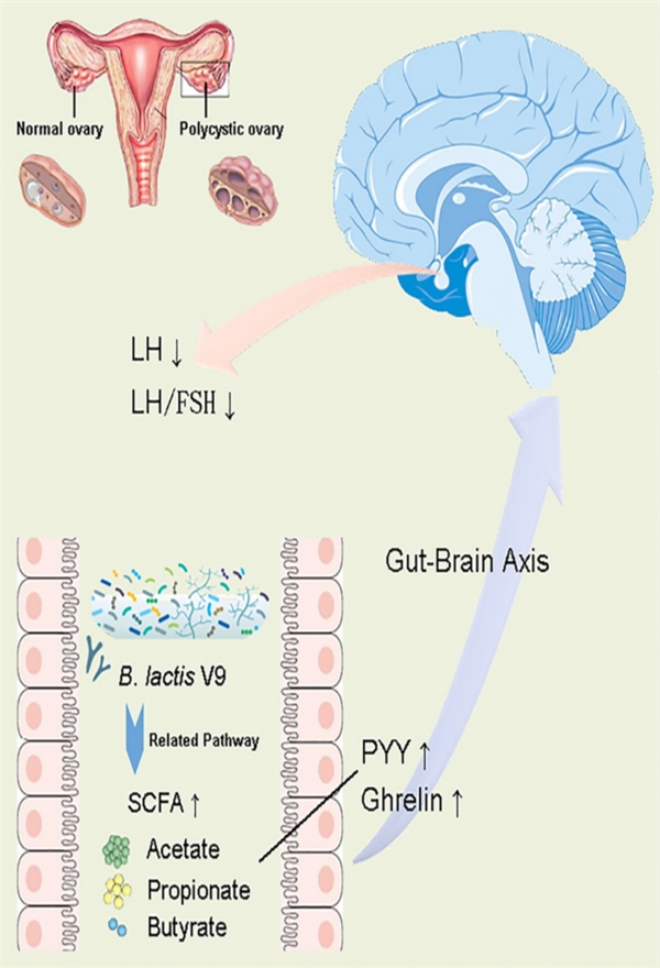 分段守护,科学养巢:针对女性不同年龄段的生理特点,MBB科研团队构建了独特的“分段养巢”配方体系。研究表明,V9能够通过调节肠道菌群代谢产物,基于“肠-脑轴”通路调控性激素分泌,从而在改善多囊卵巢综合征(PCOS)及延缓生殖系统衰老方面发挥积极作用。