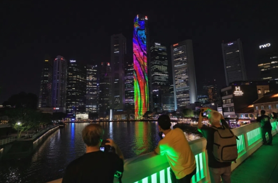 今年6月,大华为庆祝成立90周年和新加坡建国60周年,首次把280米的莱佛士坊大华银行第一大厦转化为五彩缤纷画卷,记者正好目睹黄一宗同气质清雅的张恭玲,偕孙子观赏这出全球最高的灯光投影表演。