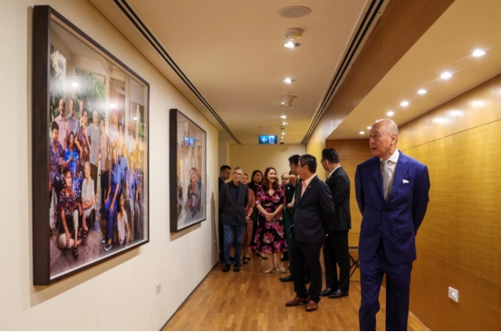 2024年1月,新加坡国家美术馆与大华银行签署谅解备忘录,将双方合作关系延长多五年,持续共绘东南亚艺术篇章。当天,黄一宗(右一)参观大华银行东南亚展厅,以及重新以大华银行命名的展览空间和影片放映室。(档案照片)
