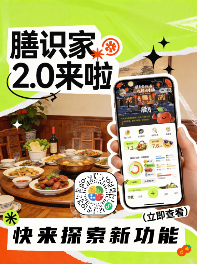 目前,膳识家2.0版本微信小程序已上线。新版本引入了多巴胺视觉设计,优化了“饭漂亮”照片打分系统及“抽象盲盒”等交互环节,旨在通过趣味性驱动用户养成长期的健康饮食习惯。针对2026年春节期间的饮食场景,软件还特别推出了“晒年夜饭”活动,以及“假日7天饮食打卡”活动,用户参与活动就有机会赢取iPhone 17 Pro。
