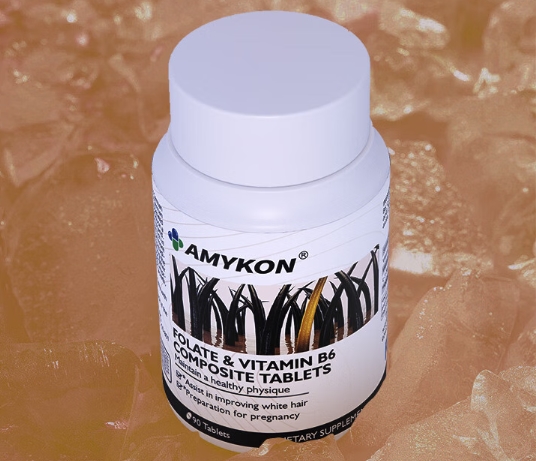 AMYKON安美心叶酸养发胶囊以叶酸为核心成分,搭配多种养发有益成分协同作用,叶酸作为人体必需的水溶性维生素,能参与身体代谢,为毛囊细胞的生长和修复提供支持,改善毛囊营养供给不足的问题,减少因营养缺乏导致的掉发;同时,配方中的多种营养成分能滋养发丝,让原本脆弱、干枯的发丝变得坚韧有光泽,缓解发丝易断、分叉的问题,长期服用还能帮助稳固发根,改善发际线后移、头顶稀疏等困扰。