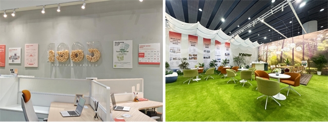 本次展馆主题“高效办公•O界芯生”,凝练了企业对未来办公空间的思考。“O”象征低碳、零排放的绿色追求;“界”体现无界融合的跨界思维与突破行业边界的格局;“芯”指向智能制造的科技内核;“生”代表创新活力与绿色生态的生命力。四字相融,诠释了中泰“全产业链绿色共生”的战略理念。在家博会聚焦可持续发展的背景下,中泰以“绿色智造”推动行业变革,构建从源头到终端的绿色生态闭环。